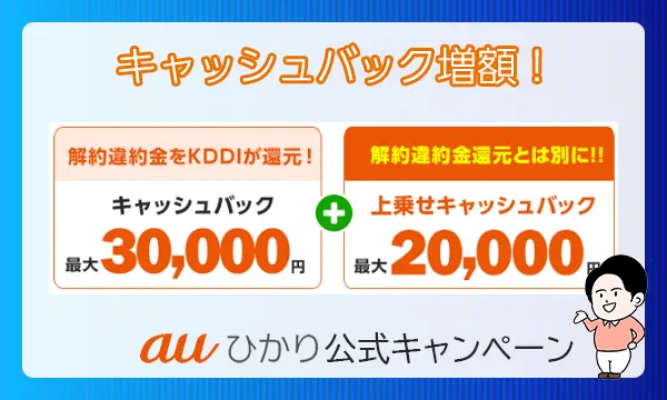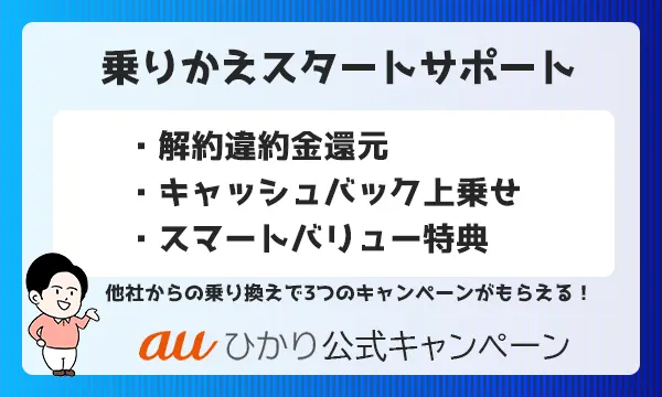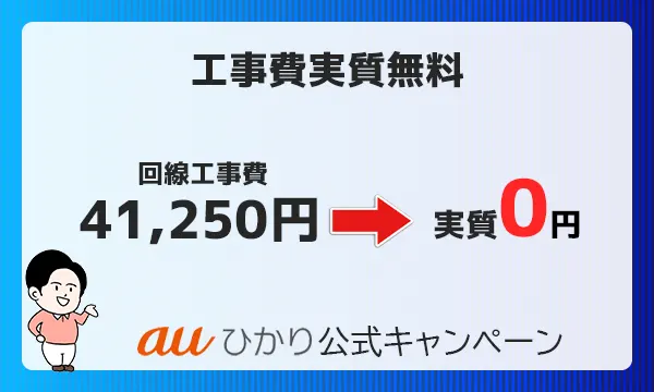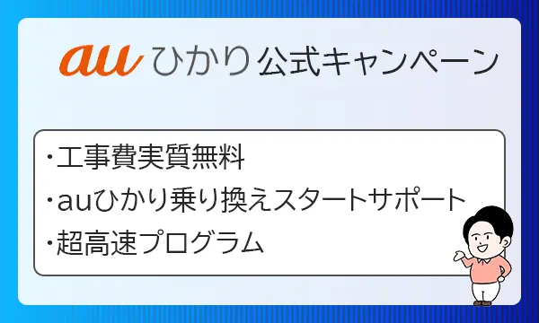 | 公式キャンペーン | 工事費無料 auひかり乗り換えスタート 超高速プログラム | 工事費無料 auひかり乗り換えスタート 超高速プログラム | 工事費無料 auひかり乗り換えスタート 超高速プログラム |