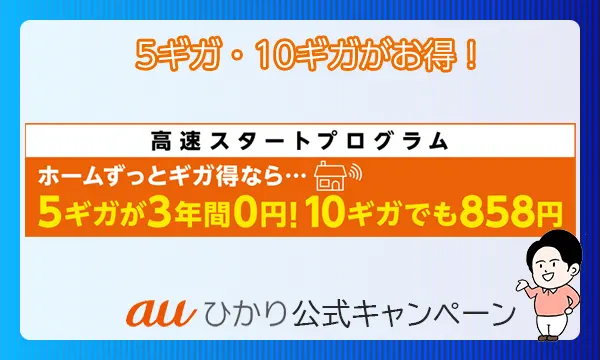 注意点として「超高速スタートプログラム」は、auひかりで利用するプロバイダにより適用にならない場合があるので、申し込みの際に必ず確認してください。