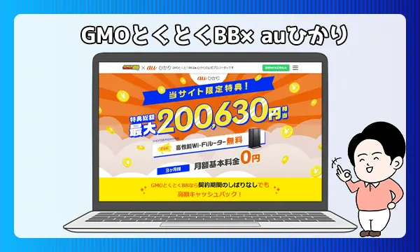 GMOとくとくBBはauひかりのプロバイダですが、キャンペーンが豊富でキャッシュバックも高額な人気の申し込み窓口です。