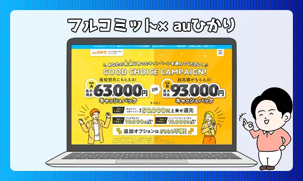 フルコミットからの申し込みは、独自のキャッシュバックキャンペーンとプロバイダのキャンペーン、auひかり公式キャンペーンが適用になります。