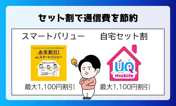 auスマートバリューとUQモバイル自宅セット割の割引額は次の通りです。