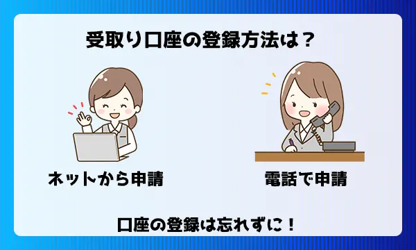 口座の登録方法は窓口で異なりますが、フルコミットの特典A(キャッシュバック63,000円)は電話で口座を伝えるだけなのでもらい忘れがありません。