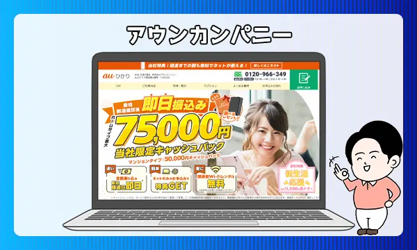 少しでも早くキャッシュバックを受け取りたいのであれば、キャッシュバック額は少なくなりますが、アウンカンパニーがおすすめです。