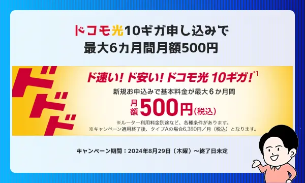 3. 「ドコモ光 10ギガ」基本料金最大6カ月間ワンコインキャンペーン