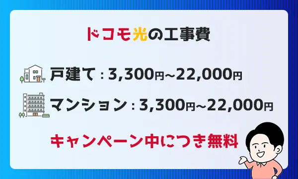 ドコモ光を新規契約する際にかかる工事費が無料となります。