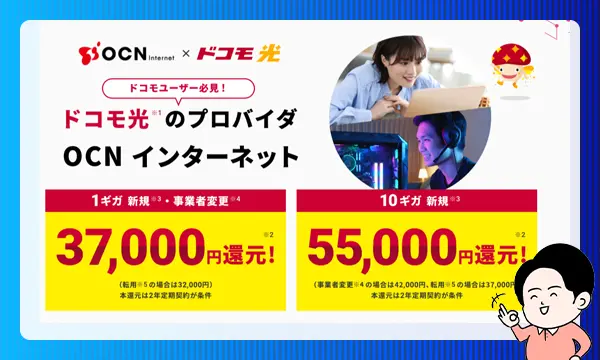 4. OCN インターネットのドコモ光(キャッシュバック37,000円)