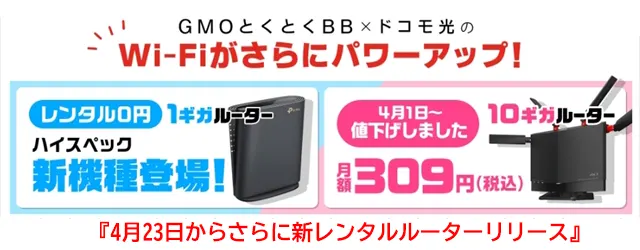 工事費無料キャッシュバックdポイント進呈ルーターレンタル