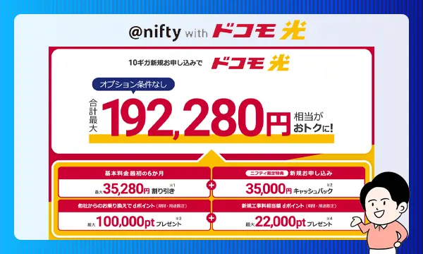 5. @nifty with ドコモ光キャンペーン(最大35,000円キャッシュバック)