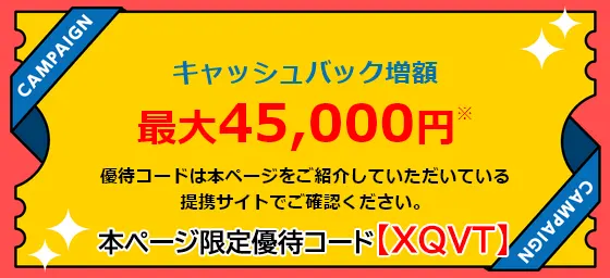 当サイト限定優待コード【XQVT】利用で42,000円キャッシュバック