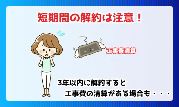 そのため工事費の支払いが終わる前に解約すると、解約した時点で割引は終了となり、残った工事費を一括で支払わなければいけません。
