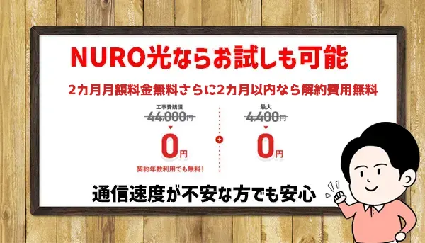 NURO光を申し込むと工事費(44,000円)が実質無料となります。
