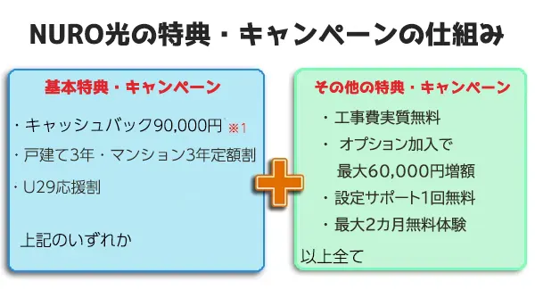 NURO光の特典・キャンペーンは【基本特典・キャンペーン】+【その他の特典・キャンペーン】となっています。