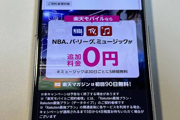 | NBA、パ・リーグ、ミュージックがお得に楽しめる! | NBA、パ・リーグ、Rakuten Musicが追加料金0円で利用(視聴)可能 | |