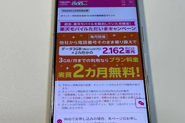 - 楽天モバイルただいまキャンペーン