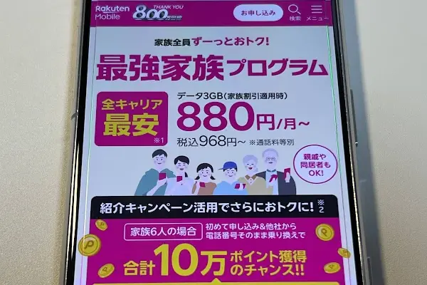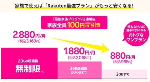 学生一人でもお得ですが、家族みんなで楽天モバイルを利用すればさらにお得です。