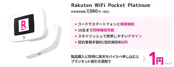- Rakuten WiFi Pocket Platinum 1円キャンペーン