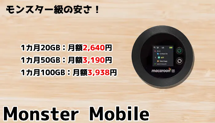 料金が安いレンタルWi-Fiをお探しの人には「モンスターモバイル」がおすすめです。