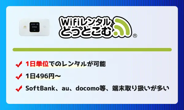 WiFiレンタルどっとこむでは、ポケット型WiFiを1日~レンタルすることが可能です。